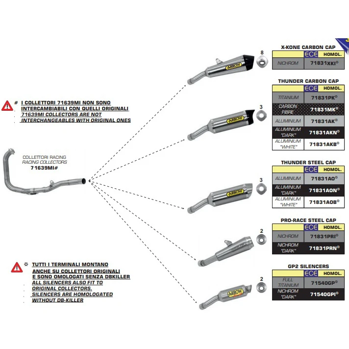 Street Thunder silencer are light and powerful, they are available as slip on systems or as a part of the full system (with Arrow collectors) and are available also in a street legal versions, with removable baffle.