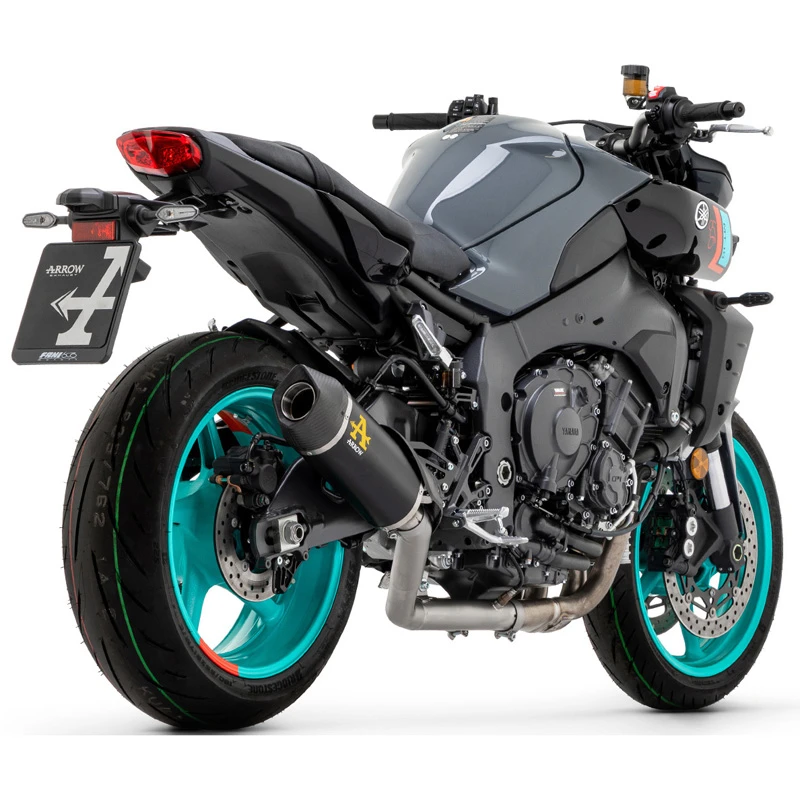 Arrow’s 71946AKN Indy-Race Slip-on Exhaust, Aluminum Dark with Carbon End Cap is made specifically for Yamaha MT-10 (2022-current).