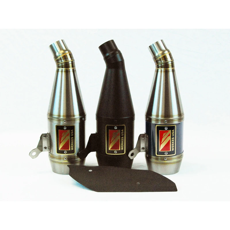 All of Competition Werkes Exhausts are TIG welded by hand in the USA, resulting in a decidedly custom look reminiscent of modern GP machines. Only high-quality, laser-cut 304 stainless steel is used due to its durability and rust resistance.