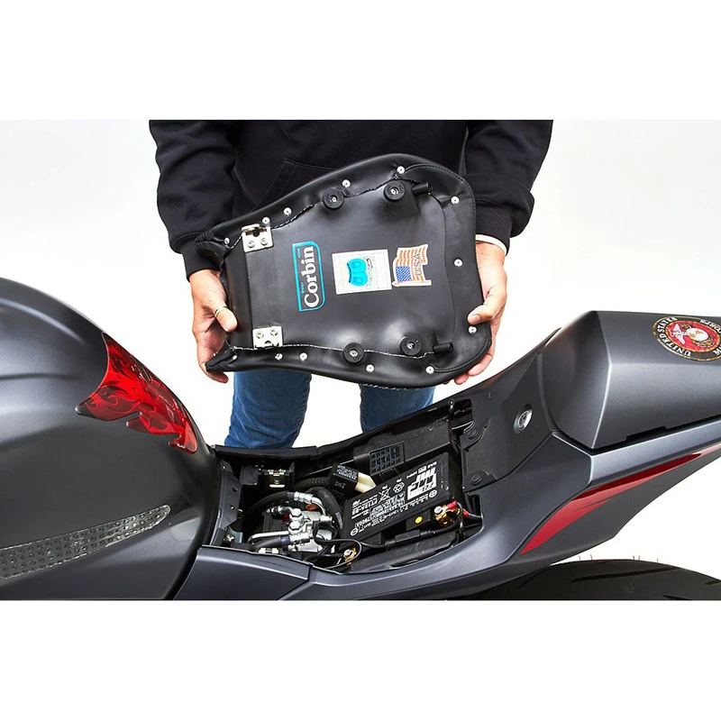 - Front saddle installs just like stock with mounting brackets included and premounted on the Corbin saddle.