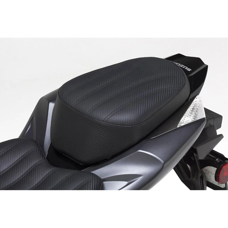 - Rear seat installs easily and uses the stock Suzuki key lock system. Brackets are included that integrate with your Gixxer mechanism and come premounted on the seat as shown.