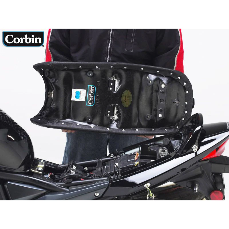 - Installs like stock with brackets premounted on the Corbin saddle. Simply remove your oem seat and replace it with the Corbin saddle using the stock Suzuki key lock.