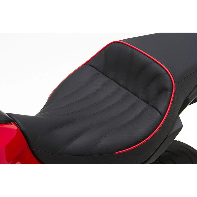 - Fastback tail provides for passenger transportation while keeping a low profile on the bike.
