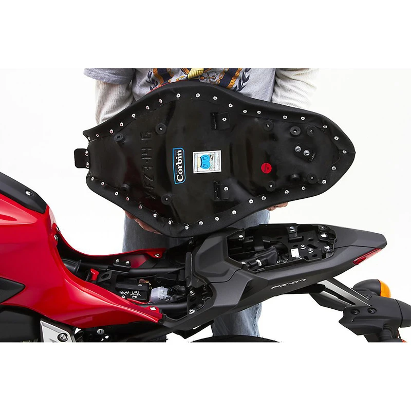 - Corbin saddle will not work with the Yamaha accessory trunks as there is no room under the Corbin basepan for the rear rack.