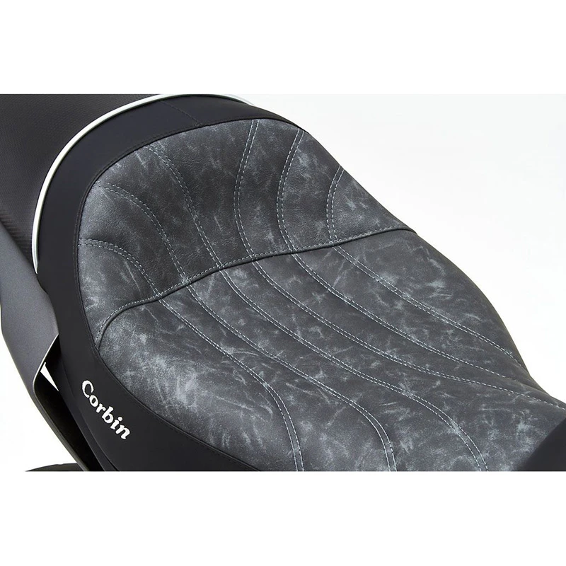 - Corbin backrest will not install with the Rear Rack / Trunk Case Mount in place.Corbin saddles (with very few exceptions) include Genuine Leather Seating to provide a luxurious look and feel.