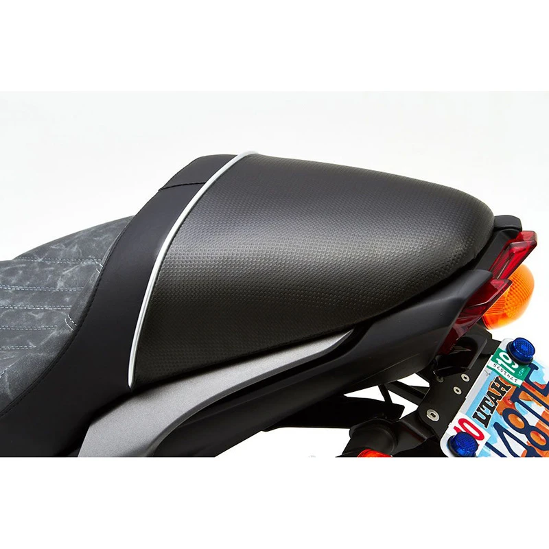 - Fastback tail provides for passenger transportation while keeping a low profile on the bike.