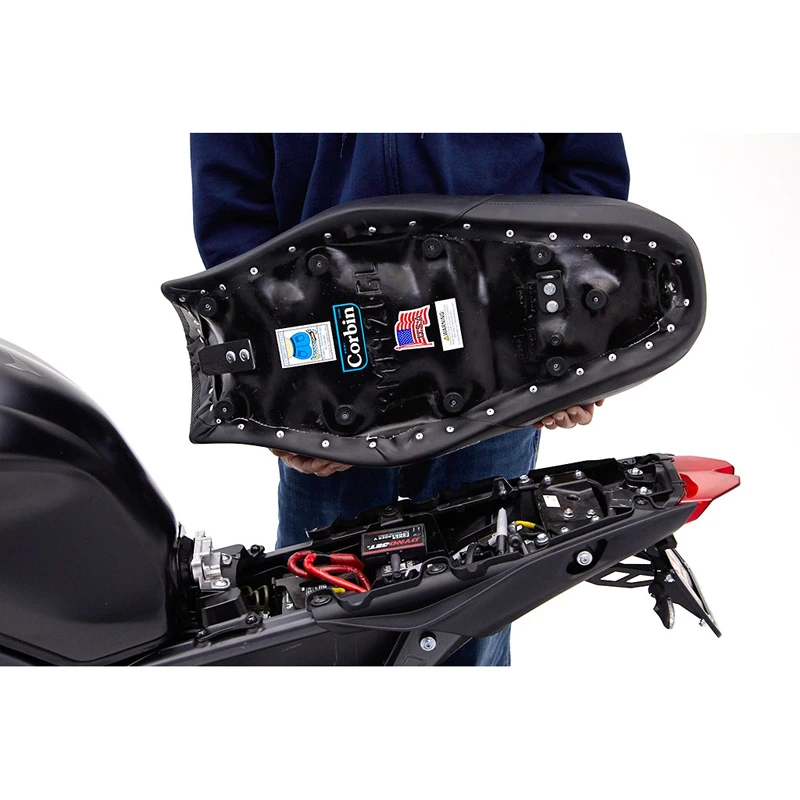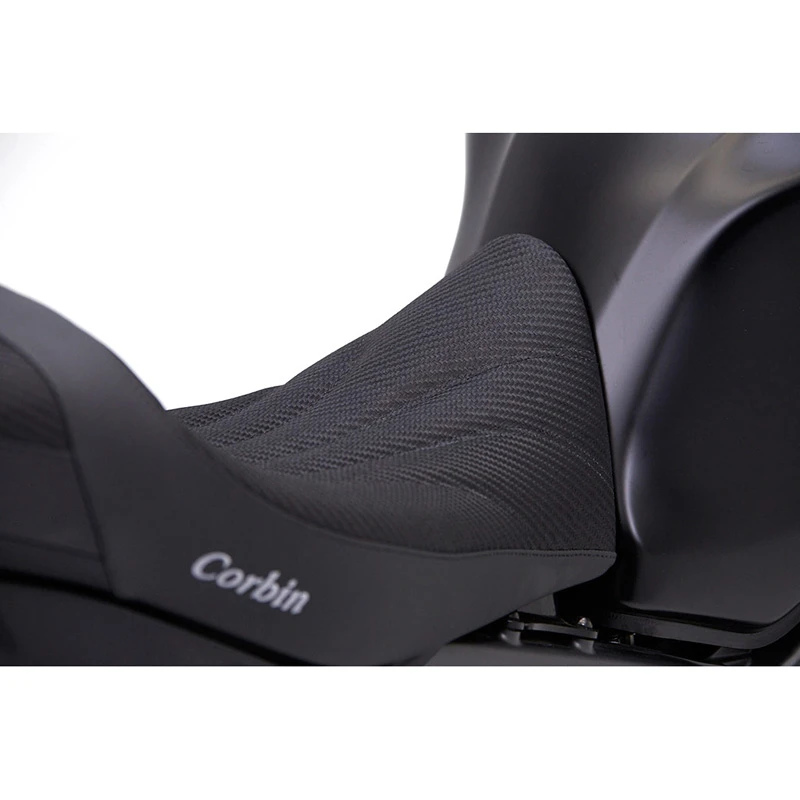 - Saddle installs like stock and integrates with the factory key lock system. Brackets included and premounted on the Corbin saddle.