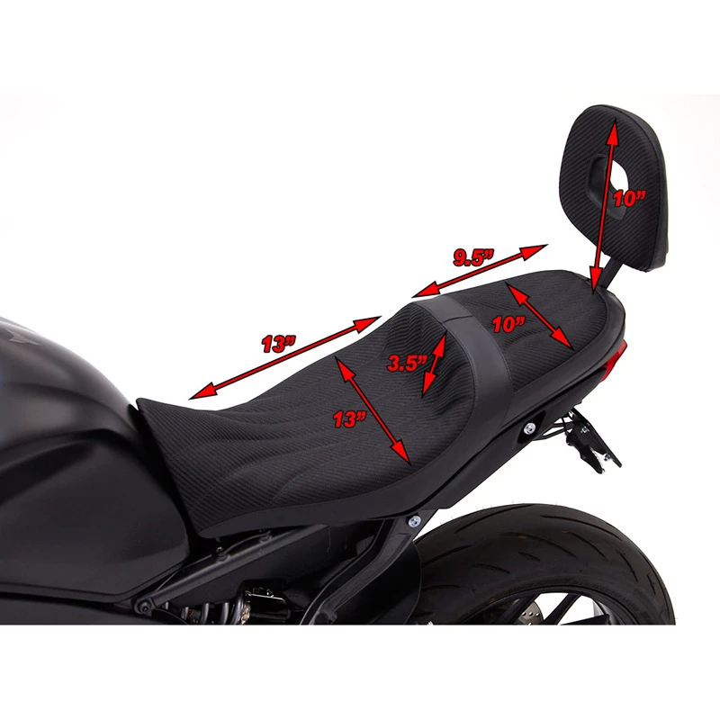 - Rider and Passenger seating areas are neutralized to curb sliding in the saddle under braking.