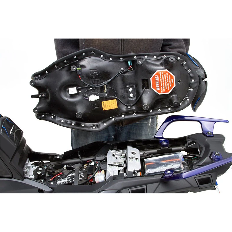 - Corbin’s saddle installs on your bike like stock with hardware preinstalled on the seat. If you order a heated model, we include a pigtail that connects directly to your battery. A built in timer on the saddle automatically shuts off the seat power after 1 hour to protect you battery if you forget to turn it off.