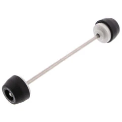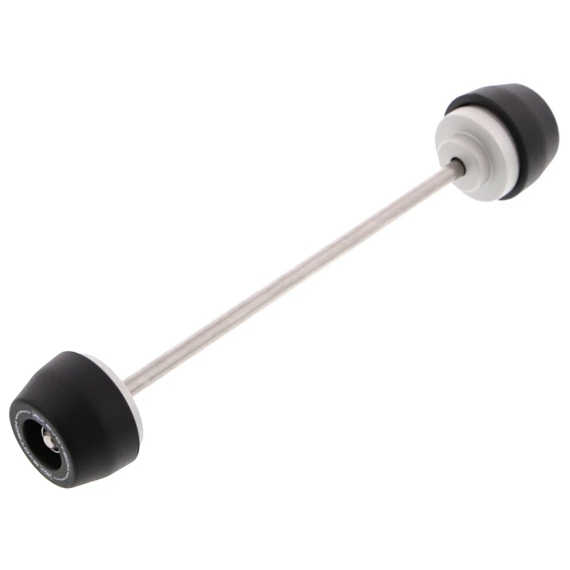 EP Spindle Bobbins Kit for the Yamaha MT-10 project from the sides of each wheel, offering protection to the wheel spindles, lower front forks, brake calipers and rear swingarm. Easily installed, the black bobbins are held in place by a rolled-thread spindle rod. The durable materials of injection-moulded nylon and aluminum are anticipated to be first to receive injury should an incident occur, reducing expensive damage to the motorcycle.
