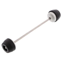EP Spindle Bobbins Kit for the Yamaha YZF-R6 project from the sides of each wheel, offering protection to the wheel spindles, lower front forks, brake calipers and rear swingarm. Easily installed, the black bobbins are held in place by a rolled-thread spindle rod. The durable materials of injection-moulded nylon and aluminum are expected to be first to receive impact should an incident occur, decreasing expensive damage to the motorcycle.