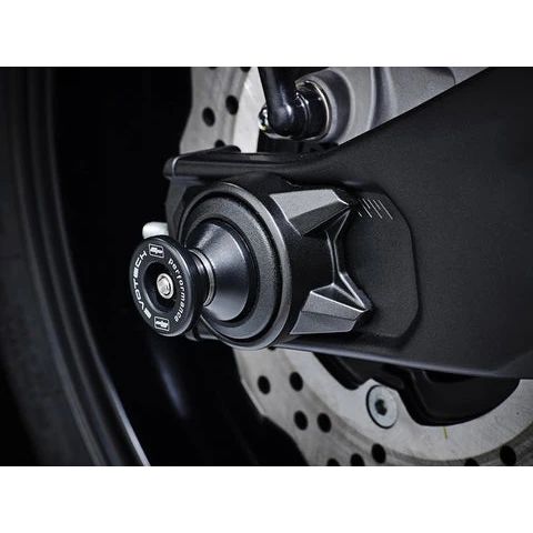 For care of your motorcycle, the maintenance, storage and crash protection will need careful consideration. The EP Spindle Bobbins Paddock Kit for the Yamaha MT-07 gives crash protection for the front forks and brake calipers whilst also including rear spindle paddock bobbins. Precision designed to fit your Yamaha, the front bobbins project from the wheel to take first impact, should an incident occur, decreasing costly damage. The rear paddock bobbins fit many brands of C or V cup paddock stands, which allows the rear wheel to be lifted for upright storage and general maintenance.