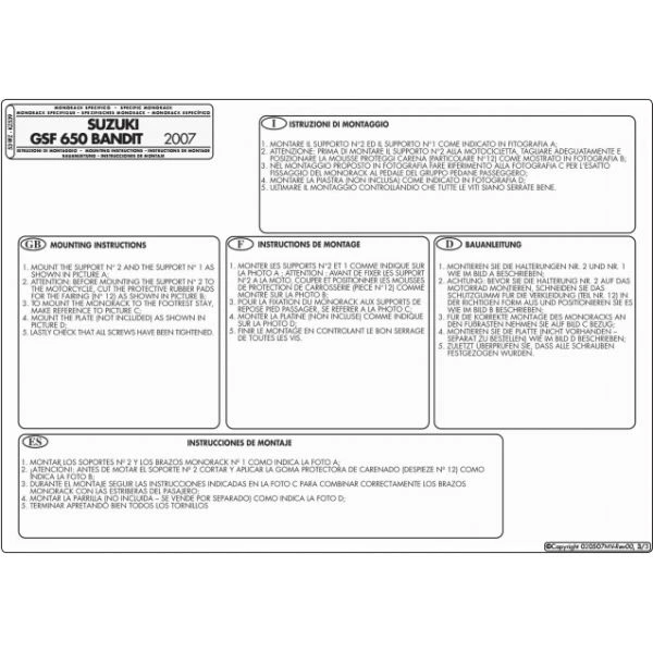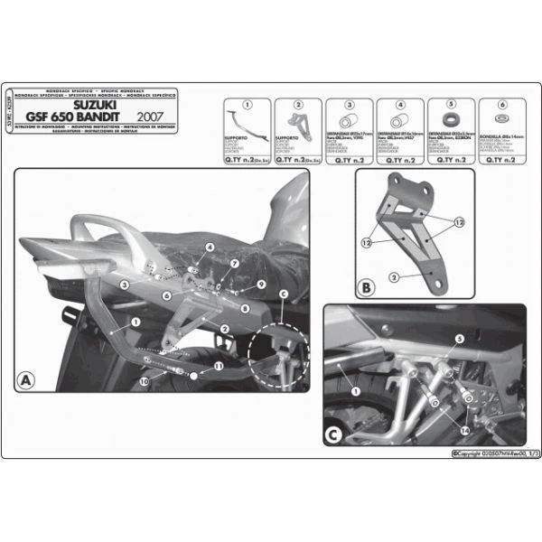 GIVI 539FZ Monorack Arms are made specifically for Suzuki GSX 650F (2008-2011) and GSX1250F 2011.