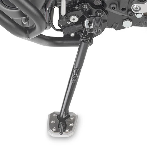 The Givi Side Stand Extensions extend the surface area of the side stand of the motorcycle, reducing the risk of motorcycle falling when it is parked on uneven surfaces such as; mud, sand, grass or asphalt during extremely high temperatures. Produced in anodised, milled and satin aluminium with the high support made of stainless steal 315 steel and designed with a technical look, the side stand extensions integrates perfectly with your motorcycle.