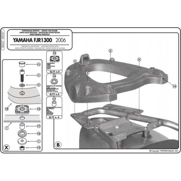 Givi’s SR357 Topcase Rack is made specifically for Yamaha FJR1300 (2006-current) to fit Givi Monokey Topcases.