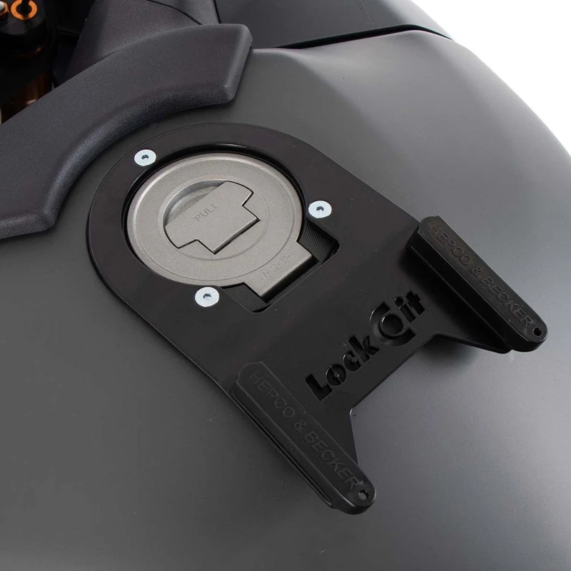 The Tank Ring from Hepco & Becker is the mounting plate needed to equip your bike with a Hepco & Becker tank bag. The tank ring is mounted to your bike’s filler cap with screws and features a magnetic base for the bag to attach to. The magnets from the bag and tank ring come together to form a strong bond only broken when deliberate force is applied.