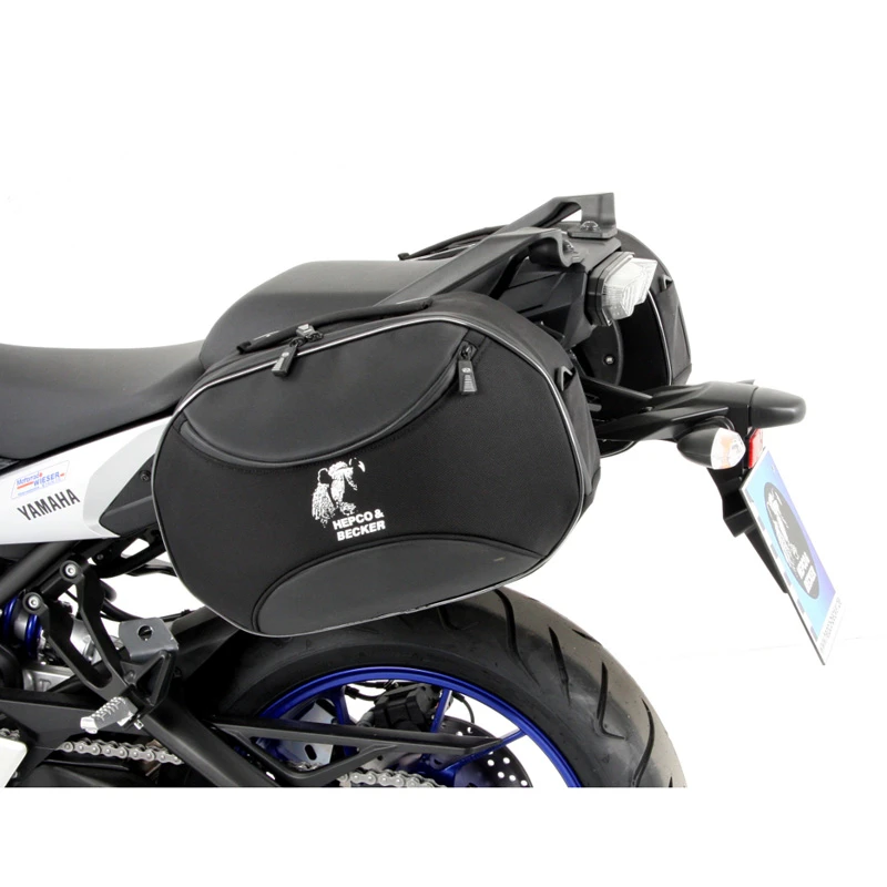 Hepco & Becker’s 630.4547 C-Bow System is made specifically for Yamaha FZ-09. This system consists of a very discrete C-shaped mounting plate that accepts the Street soft bags and applicable Leather bags. When the bags are off of the bike, the C-Bow holder is unobtrusive to the appearance of the bike. This allows you to leave the mounting plate on your bike without taking away from the look of the bike. To attach the bags, all you have to do is slide them onto the C-shaped mount. All C-Bow bags come with a lock and key to secure them to the C-Bow mount.