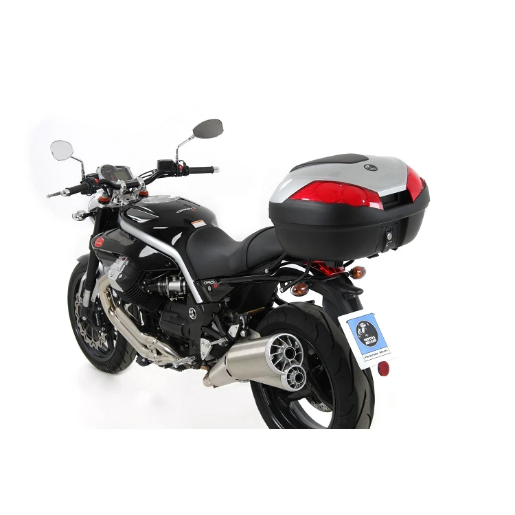 Hepco & Becker’s 650.537 01 01 Rear Rack is made specifically for Moto Guzzi Griso 850 / 1100 / 1200. This rack allows you to attach any hard top case offered by Hepco & Becker. Every Rear rack is custom designed for each individual model bike. These racks are made of high quality steel tubing finished in black, silver or chrome. All racks are relatively easy to install and come with the required hardware and installation instructions.
