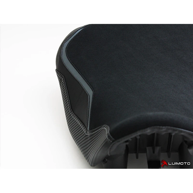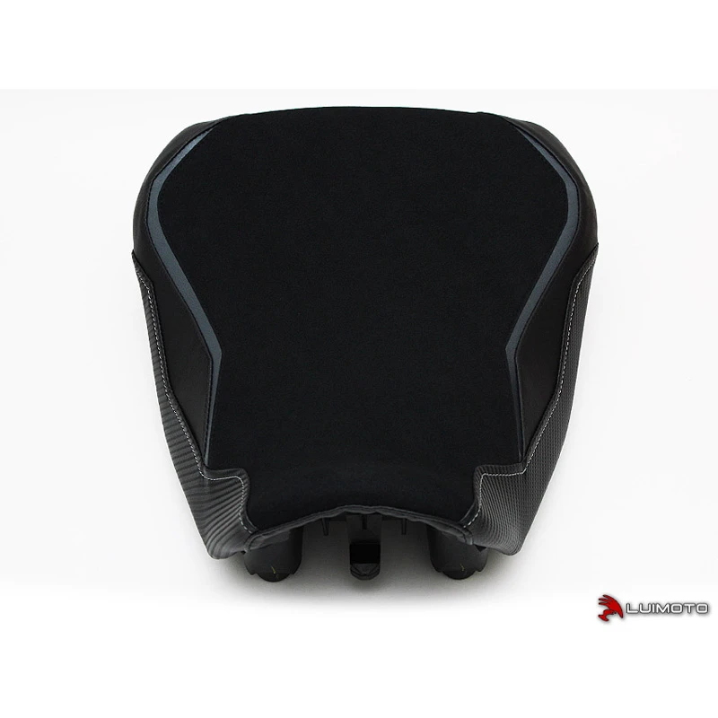 The FJ-09 Team Yamaha seat cover features marine grade carbon fiber look panels with contrast stitching. The premium synthetic upper adds a touch of luxury for an overall high tech and sophisticated look.