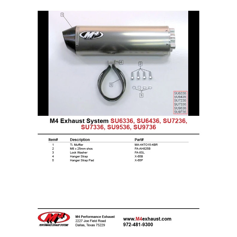 M4 SU7236 Standard Bolt On Titanium Muffler is made specifically for Suzuki GSX-R750 (2000-2003).