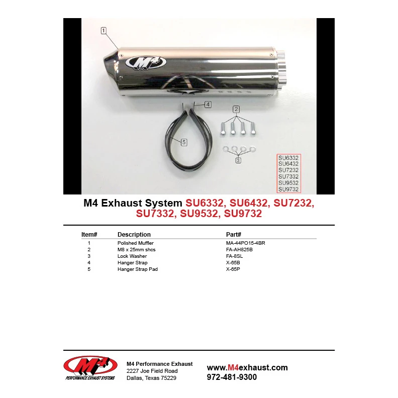 M4 SU7332 Standard Bolt On Polished Muffler is made specifically for Suzuki GSXR-R750 (2004-2005).