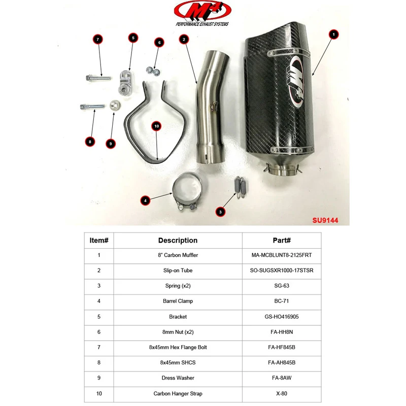 M4 SU9144 Slip On Exhaust With Stainless Steel Tubing, Carbon Tech One Muffler is made specifically for Suzuki GSX-R1000 (2017-current).
