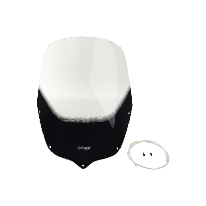 MRA’s Touring Screen is Similar in shape to the original windscreen, the MRA Touring Screen includes a raised extension approximately 2-3 inches (5-7 cm) taller than the original windscreen. Available in clear, smoke gray and gloss black. Overall length: 17.9 inches (455 mm).