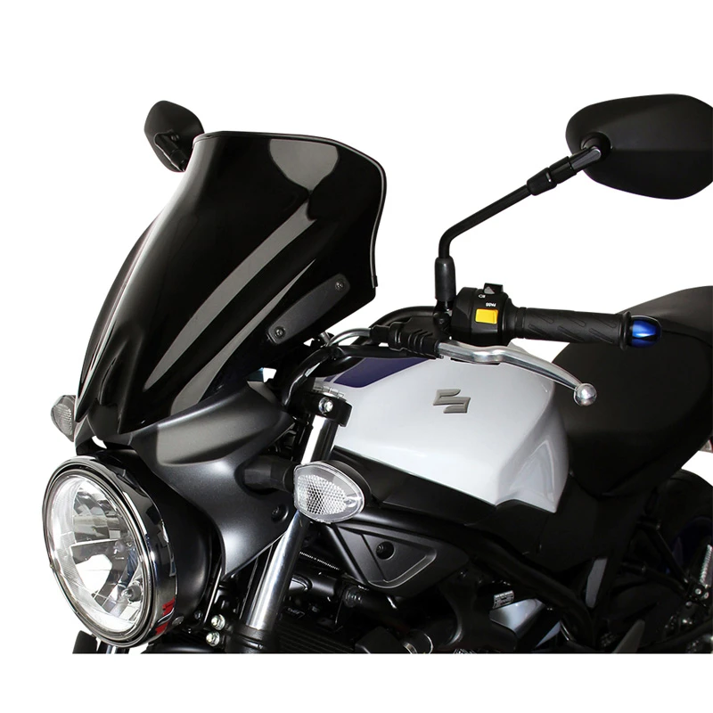 Improve your aerodynamics, high speed stability and aesthetics with an MRA Spoiler Screen for your Suzuki SV650. The MRA Spoiler Screen is a sport style windscreen that matches the overall shape of the manufacturer windscreen with a small spoiler that makes it slightly longer. What does this mean for you? The spoiler reduces drag and turbulence on the bike and in the cockpit, resulting in a much smoother ride. This spoiler screen windshield is a direct manufacturer replacement-simply remove your stock windscreen and install this one.