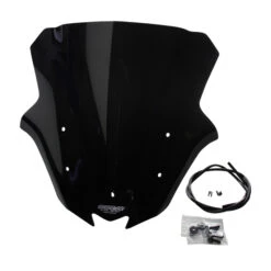 Improve your aerodynamics, high speed stability and aesthetics with an MRA Racing Screen on your Yamaha MT-07. The Racing Screen profile has been developed through extensive wind tunnel testing to significantly decrease pressure on the helmet at high speeds. The ‘double bubble’ profile helps you tuck in behind the windshield and instead of creating lift, it pulls the front of the bike onto the road. You’ll experience less drag and more stability at high speeds and overall a much smoother ride. If your motorcycle is equipped with an OEM screen—simply remove your stock windscreen and install this one, otherwise a motorcycle specific mounting kit will be included.