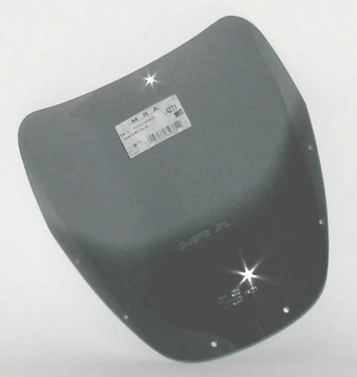 MRA’s Spoiler Screen is a flat, sport-styled windshield with a deep recess in the center and a small spoiler in the center. Available in clear, smoke gray and gloss black. Overall length: 15 inches (380 mm).