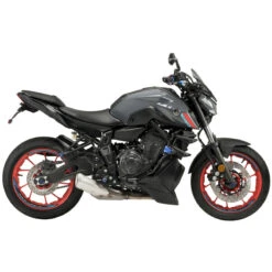 The new Puig engine spoiler for the Yamaha MT-07 2021 is the result of great work by the Catalan manufacturer’s designers with the clear objective of protecting, covering and hiding one of the least aesthetic parts of this motorcycle model, the catalyst for the exhaust pipe.