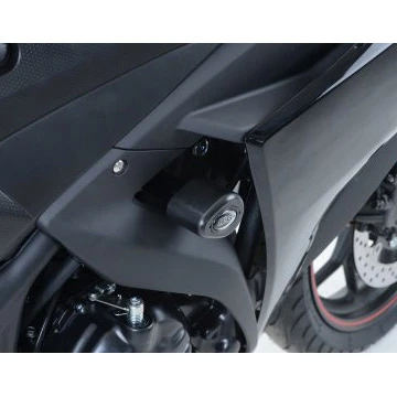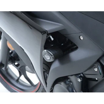 R&G Racing’s CP0391WH CP0391BL Aero Style Race Version Frame Sliders, Black are made specifically for Yamaha YZF R3 (2015-current).
