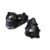 The R&G Aero Style Race Version Frame Sliders are designed to protect the frame from damage that could occur during a fall or slide. Slimmer profile white bobbins mean fairing protection is minimal as they do not protrude far beyond the bodywork. High Density Polyethylene (HPDE) sliders help slow a sliding bike while de-embrittled steel hardware bends instead of snapping, preventing energy transfer to the mounting point which could cause even more damage.