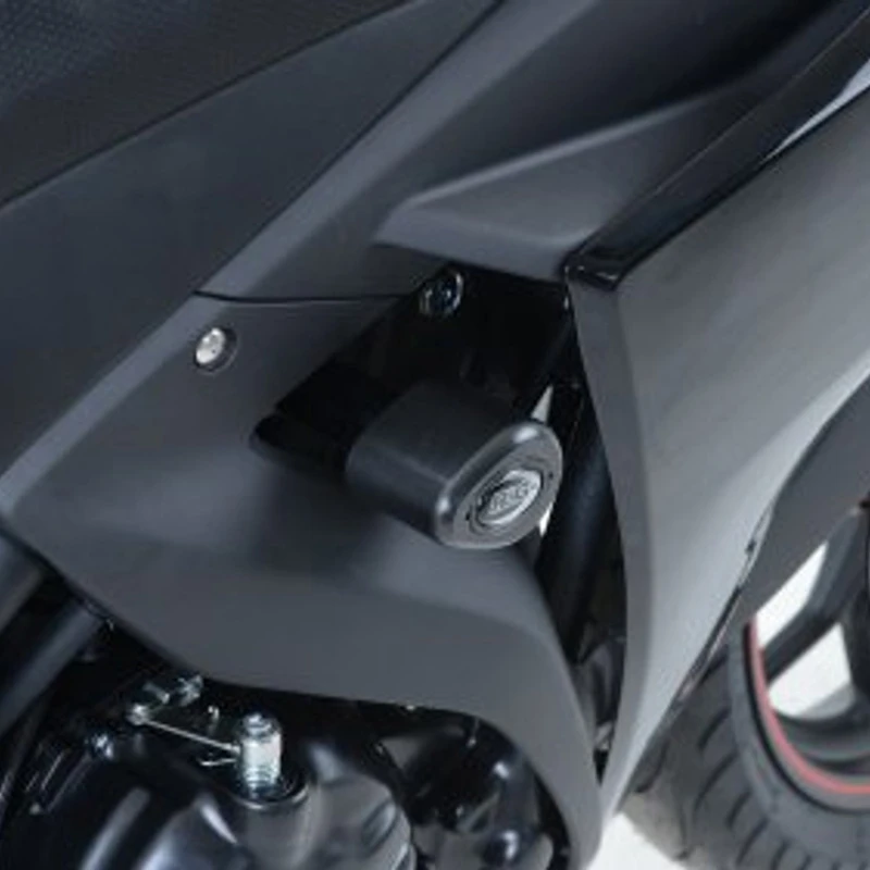 The R&G Aero Style Race Version Frame Sliders are designed to protect the frame from damage that could occur during a fall or slide. Slimmer profile white bobbins mean fairing protection is minimal as they do not protrude far beyond the bodywork. High Density Polyethylene (HPDE) sliders help slow a sliding bike while de-embrittled steel hardware bends instead of snapping, preventing energy transfer to the mounting point which could cause even more damage.