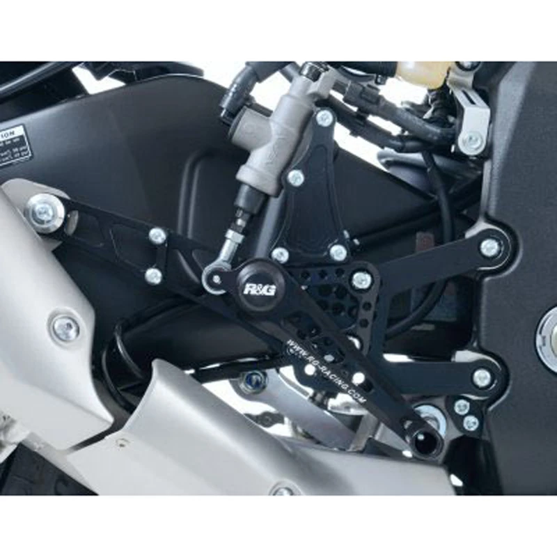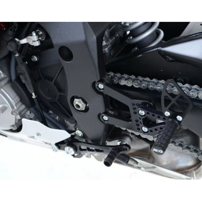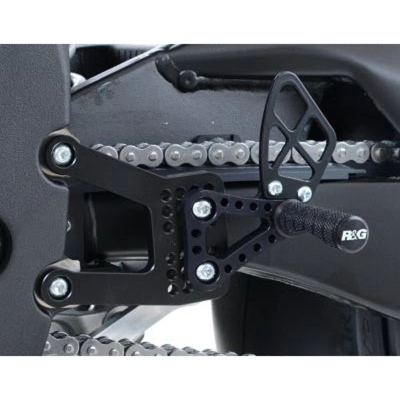 These R&G Road & Race Shift Pattern Adjustable Rearsets help you get your bike set up the way you want it. These controls allow you to enjoy a lower, more comfortable position or a higher position for increased lean angle and cornering clearance.
