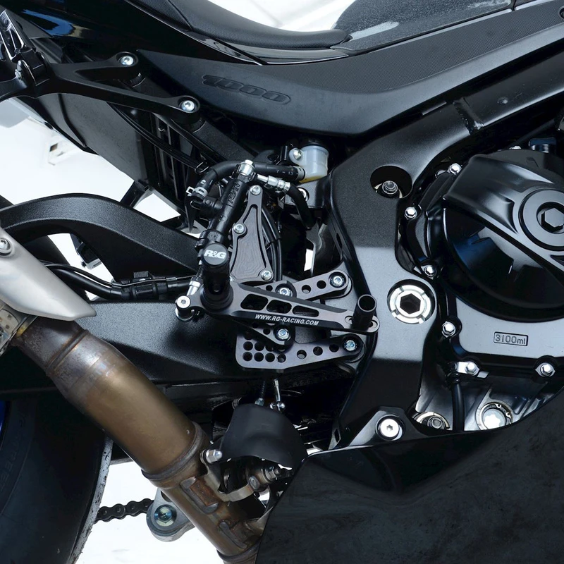 R&G Racing’s RSET32BK Road & Race Shift Pattern Adjustable Rearsets are made specifically for Suzuki GSX-R1000 / R (2017-current).