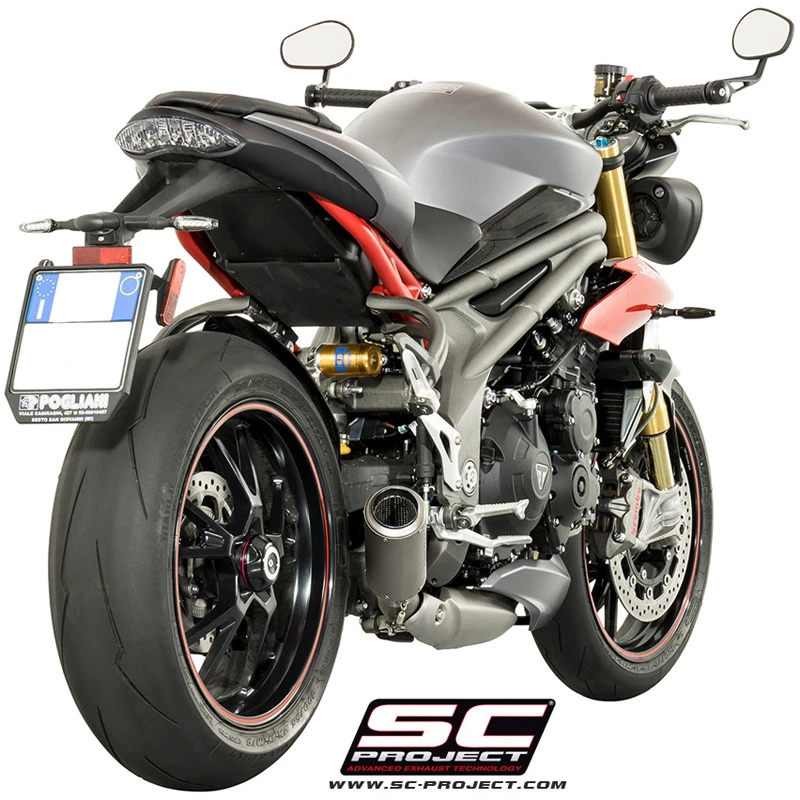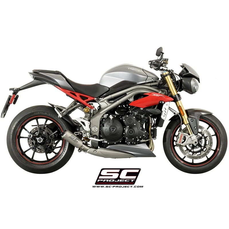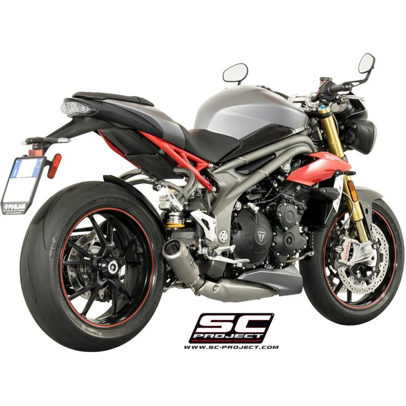 SC-Project’s T16-LT38T CR-T Slip-on Exhaust, Titanium is made specifically for Triumph Street Triple R/S (2016-current).