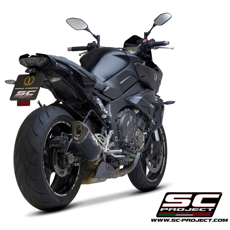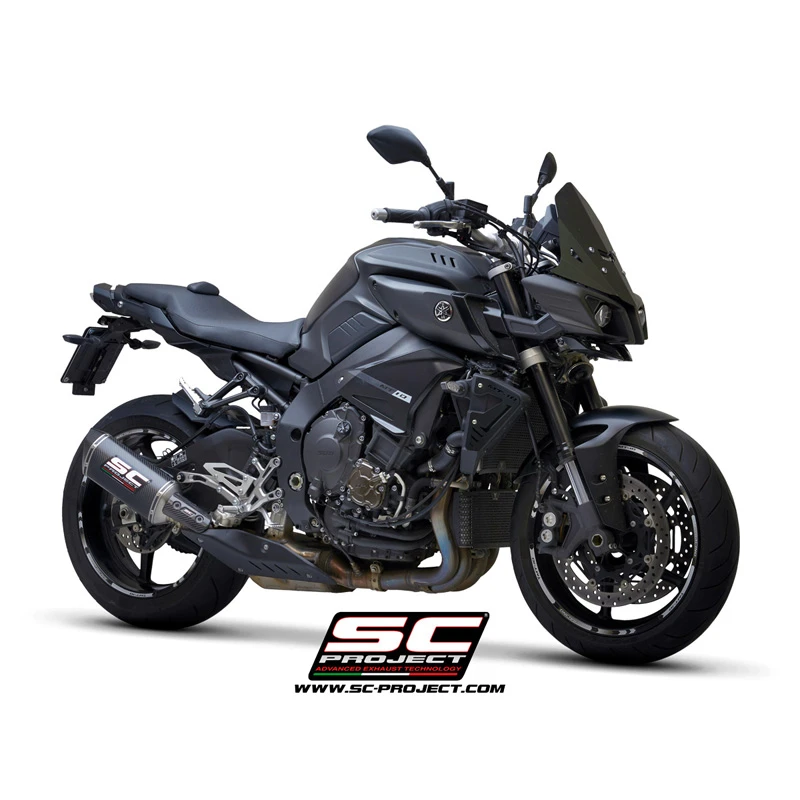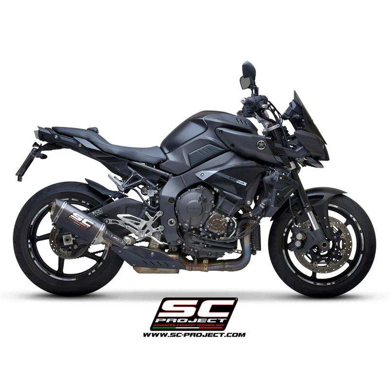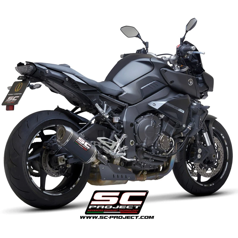 SC-Project’s Y20-T113 SC1-M Slip-on Exhaust with Carbon Fiber End Cap is made specifically for Yamaha MT-10 (2016-current).