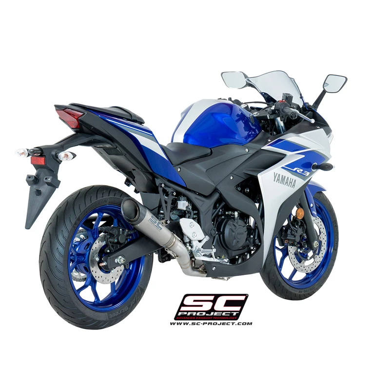 SC-Project’s Y23-C41T S1 Full System 2-1 Exhaust, Titanium with carbon cap is made specifically for Yamaha YZF-R3 (2015-current).