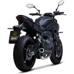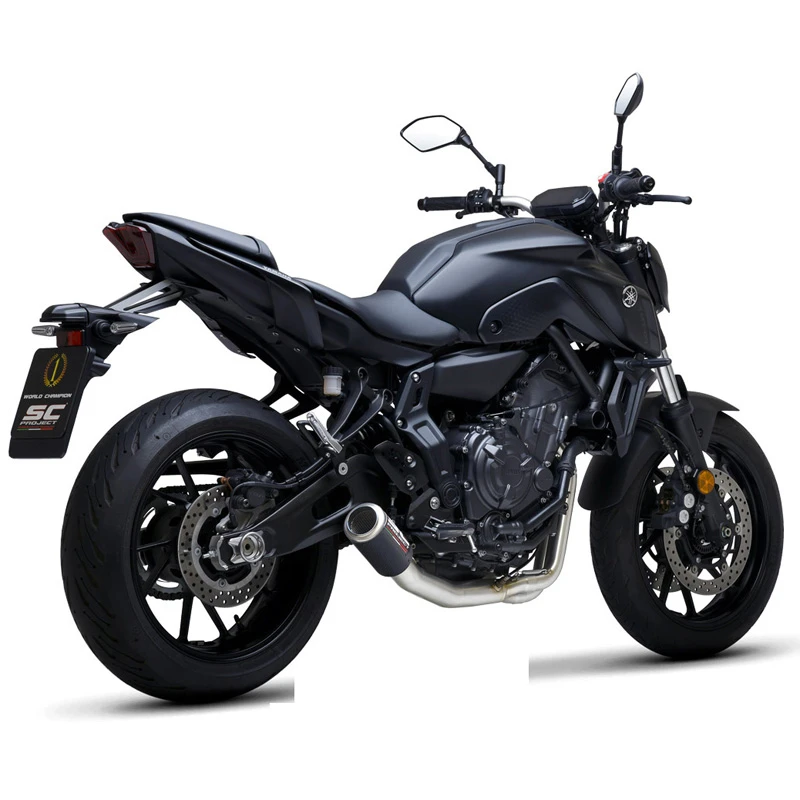 SC-Project’s Y33-CDE36C CR-T Slip-on Exhaust, Carbon Fiber with Titanium End Cap is made specifically for Yamaha MT-07 (2021-current).