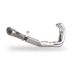 Full system with stainless steel collector and GRID-O silencer full titanium with Moto2 design. The silenced box enhances the aesthetics of the bike and complies to Euro 4 standard.Â