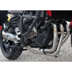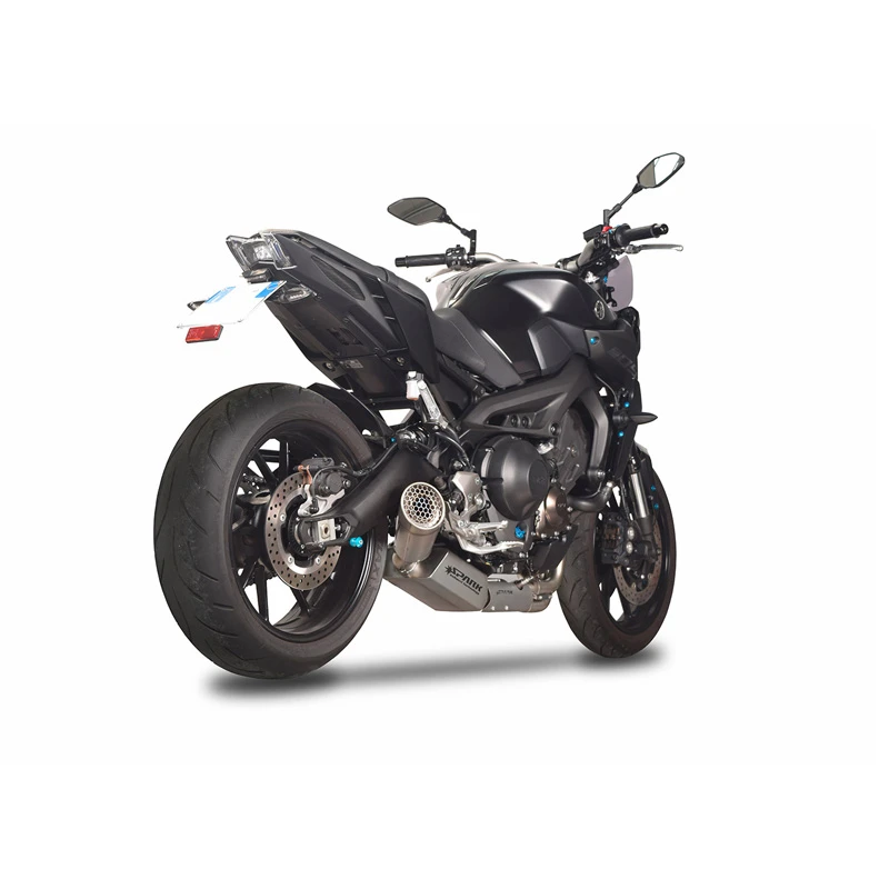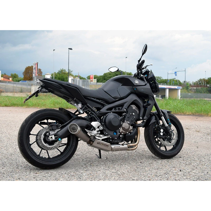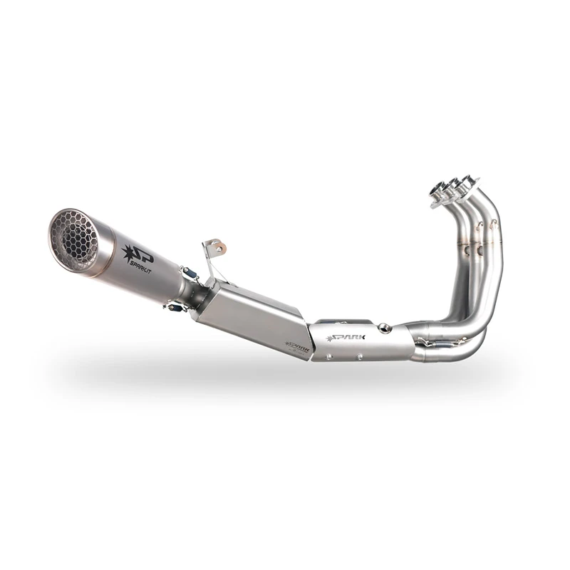 Performance, sound and weight (-3.1kg) are significantly improved compared to the original. Quality and clean lines. Homologated exhaust system boosts performance and sound: extremely dark at low rpm, the spectacular resonance of the aspirated three-cylinder engine is maintained.