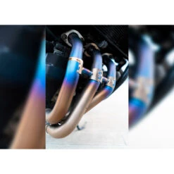 - Constructed with a titanium silencer, titanium mid-pipe, and titanium racing header.
