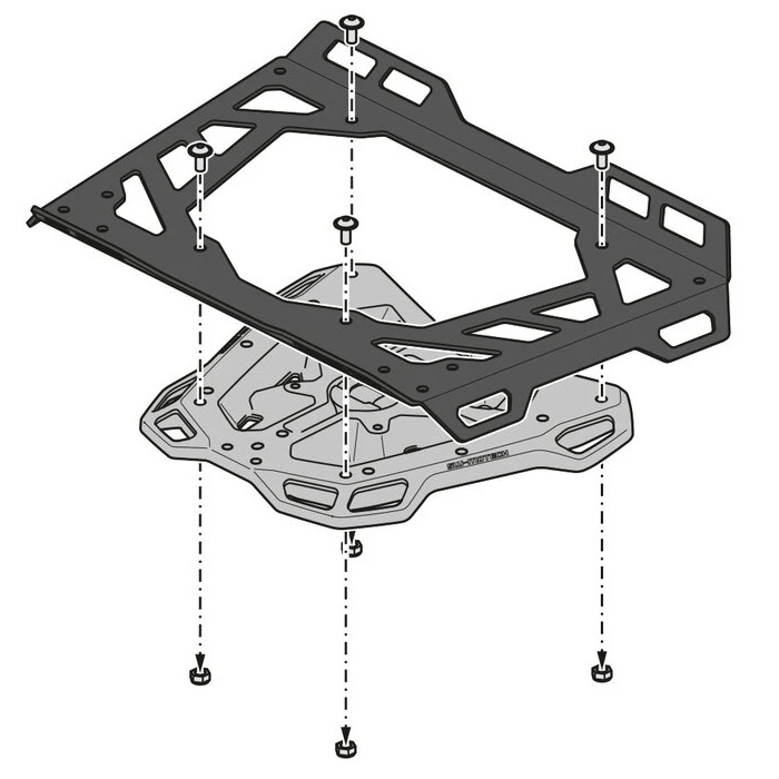 - The adapter plate latch buckle is equipped with a safety mechanism that guarantees TRAX top cases, Sysbag 15/30 with adapter plate and PRO or EVO tank bags are securely in place
