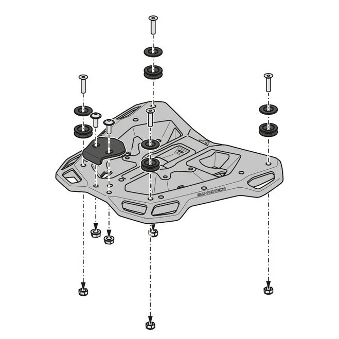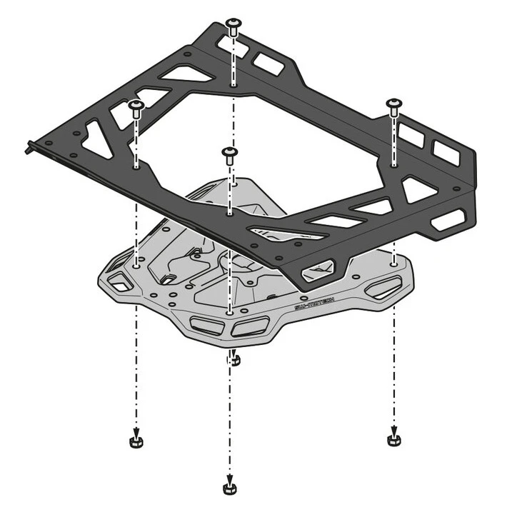 - The adapter plate latch buckle is equipped with a safety mechanism that guarantees TRAX top cases Sysbag 15/30 with adapter plate and EVO tank bags are securely in place