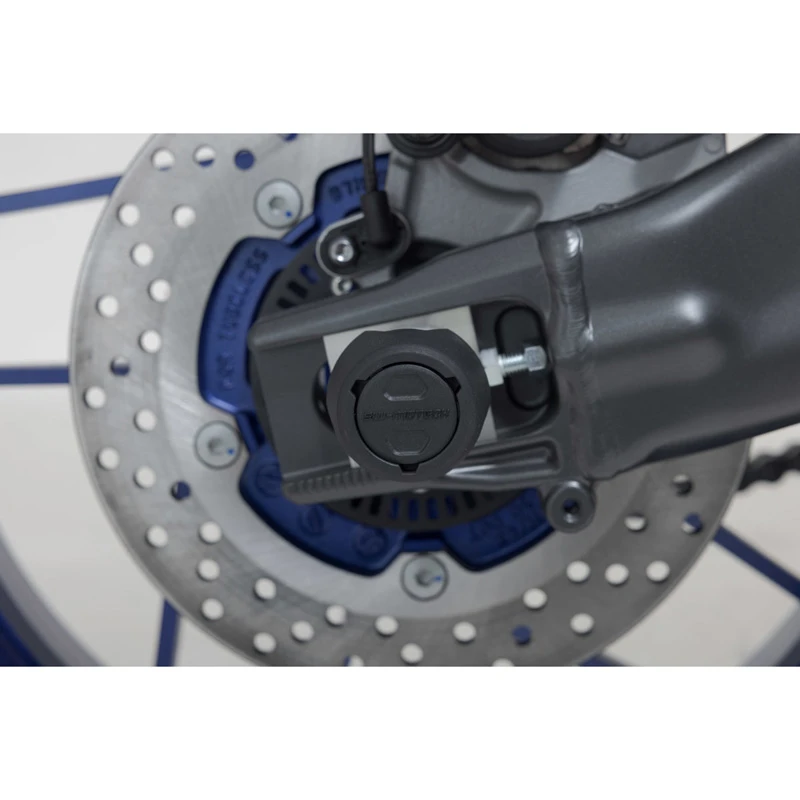 Sw-Motech’s STP.06.176.11200/B Rear Axle Sliders, Black are made specifically for Yamaha MT-09 (2021-current).